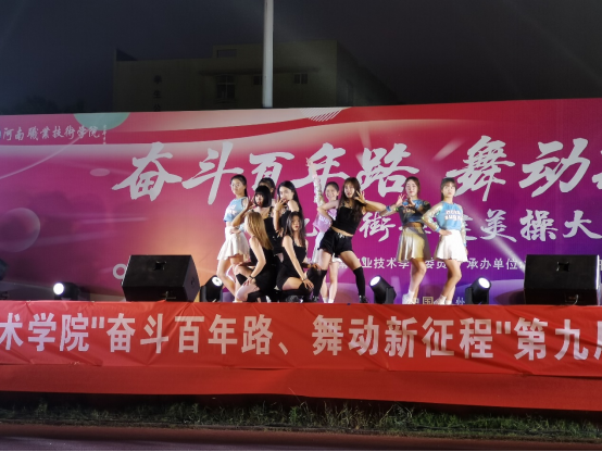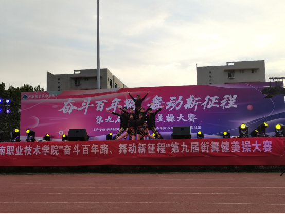 激扬青春,舞动奇迹。6月3日晚,由共青团河南职业技术学院委员会主办,校学生会及研舞堂社团承办的第九届街舞健美操大赛在操场拉开帷幕。比赛分为健美操和街舞两个部分。节奏分明的健美操和各具特色的音乐结合看点十足,活力四射的街舞让大家热血沸腾。