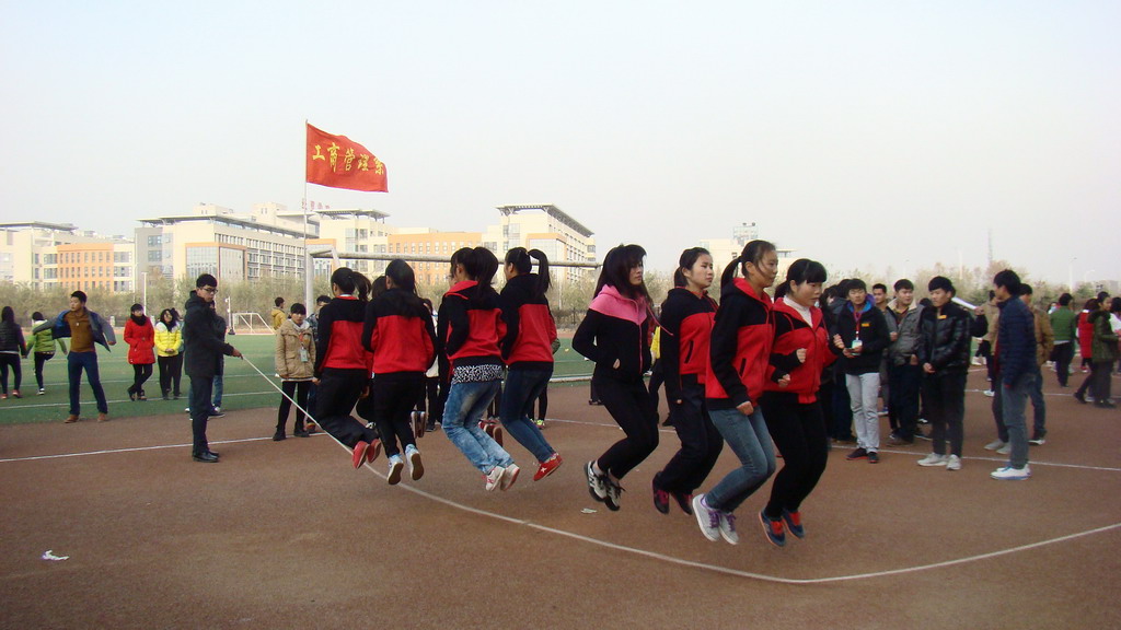 2014年12月11日,在河南职业技术学院足球场,工商管理系体育部举办了第一届“绳动飞扬·相毽工商”,工商管理系大一新生积极参与,此次比赛增强了同学们的身体素质,培养了同学课外兴趣,丰富了校园生活。