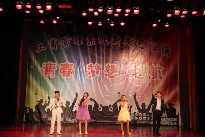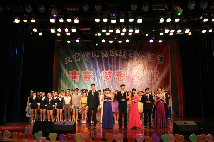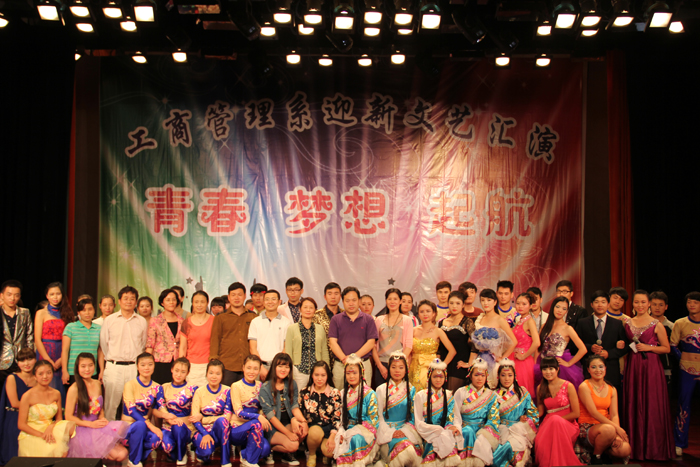 9月23日晚,工商管理系在学院音乐厅举办以“青春、梦想、起航”为主题的2014年迎新文艺汇演。副院长占江受邀出席,学工部、院团委、烹饪食品系、汽车工程系、电气工程系、工商管理系、音乐学院等有关单位负责人及全系近700名新生参加。