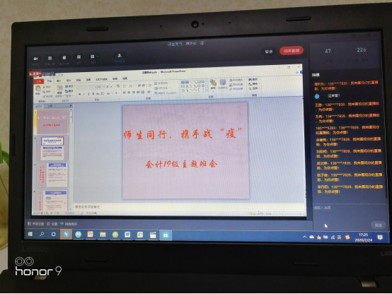 通过召开主题网络班会,商学院把“抗疫故事”变成生动的教材,教育引导学生树立正确的世界观、人生观、价值观,培养学生爱国爱民的奋斗精神和家国情怀,用实际行动展示新时代商学院学生积极投身抗击疫情、报效祖国、服务人民的高尚情怀。