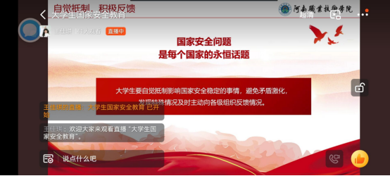 财经管理学院根据学生实际,结合疫情防控要求,利用线上和线下班会两种模式开展国家安全教育,向学生讲解了什么是国家安全、国家安全的内容、如何维护国家安全等内容。同时,通过让学生观看视频和开展讨论来深入学习国家安全知识,进一步丰富了国家安全宣传教育的形式,使国家安全教育深入人心。