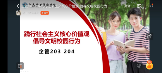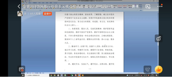 为进一步提高学生文明意识,增强学生自我管理能力,加强疫情防控常态化背景下的学生管理工作,完善学生工作动态管理机制,更好的践行社会主义核心价值观,2022年4月25日到4月28日,财经管理学院开展了大学生文明公约系列教育活动。