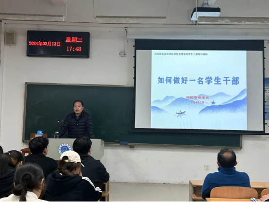 为进一步提高学生干部的管理能力,增强学生干部的基本素质,强化学生干部的服务能力,深化学生干部的桥梁作用,完善学生干部队伍的建设水平,2024年3月13号,我院在教学楼1105教室开展了新学期学生干部培训,院党总支副书记余湾展开训,22级和23级各班班长、团支书、生活委员和全体学生会干部参加培训,团总支张文龙书记支持培训。