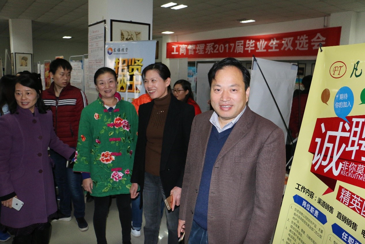 11月8日,工商管理系2017届毕业生校园专场招聘会在图书馆成功举办。来自全国的318家用人单位为该系2017届毕业生提供万余个就业岗位。副院长占江在招生就业处处长张琳和该系领导的陪同下,亲临现场调研并指导毕业生就业工作。