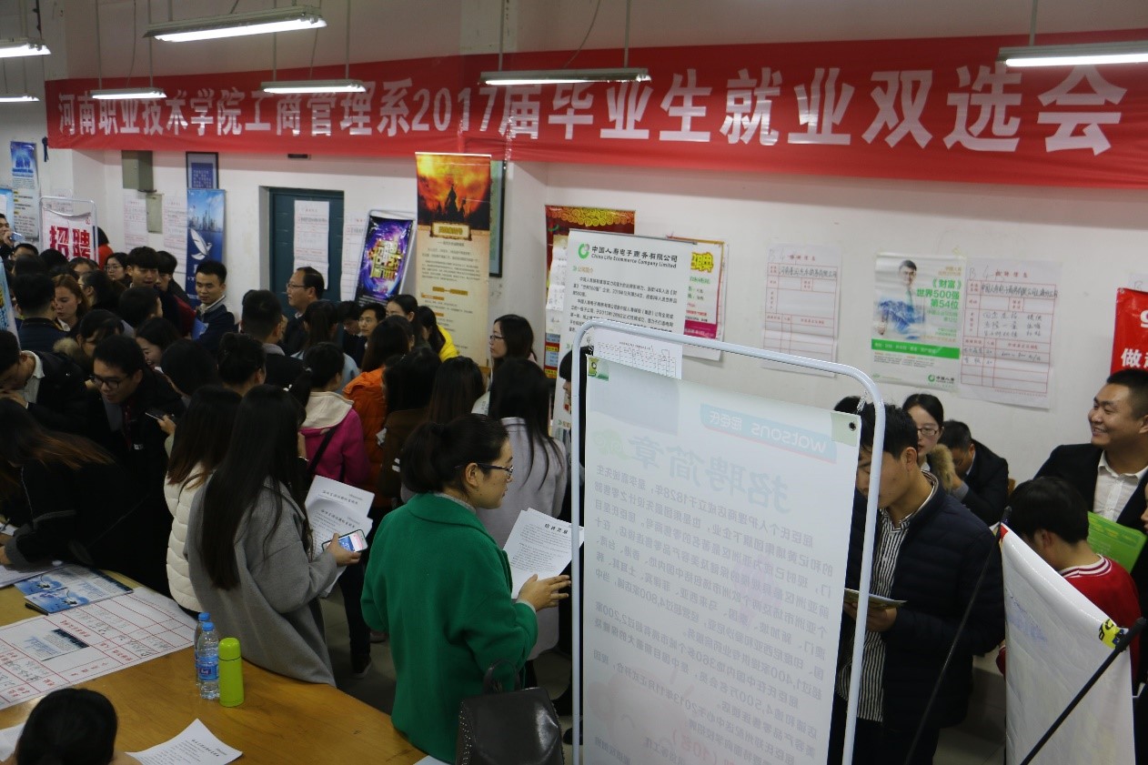 由于今年企业人才需求旺盛,有400余家企业报名参加双选会,该系会同招就处认真审核企业资质,最终挑选出318家优质用人单位到现场进行招聘。同时,为保证会场秩序,方便毕业生咨询,该系还布置了服务和接待台,整个会场人山人海、井然有序,该系陈运财、杨旭等多位老师更是主动到现场对学生进行就业指导。在今年的双选会上占展位、抢优秀毕业生成了主旋律;现场面试、现场签约成了新亮点;往届优秀毕业生成了招聘的主力军。为适应市场需求,进一步帮助学生就业,该系在扎实推进“2+1”人才培养模式的同时,做实跟岗、顶岗实习单位建设工作,与百世汇通、巴奴毛肚火锅有限公司、浙江人本等34家企业建立合作关系;为进一步促进学生就业,该系组织北京链家地产、裕华集团等26家优质就业单位,提前到相应专业召开专场招聘会和就业说明会,大大提高了学生就业的针对性和成功率。