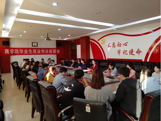 10月11日下午,商学院在行政楼332会议室举行2019届毕业生就业创业座谈会。商学院领导、教师及学生代表参加。会议由党总支书记李相勤主持。