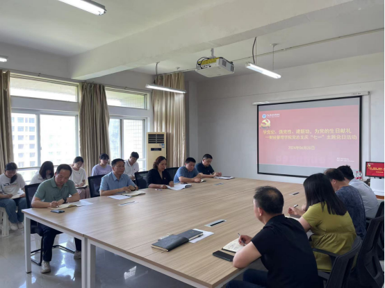为庆祝中国共产党成立103周年,进一步增强党组织的创造力、凝聚力和战斗力,6月20日,财经管理学院党总支在603会议室开展“学党纪、强党性、建新功,为党的生日献礼”庆“七一”主题党日活动。