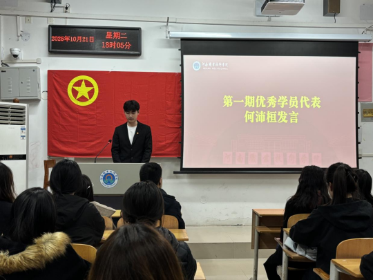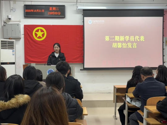 随后,上期“青马班”优秀学员代表何沛桓发言,他向新学员分享“求真”“实干”心得,寄语大家在“青马班”成长,共同为强国建设、民族复兴贡献青春力量。最后,本期新学员代表胡馨怡发言,他谈到“青马班”是青年成长的重要平台,未来将以认真态度学好理论知识、积极参与实践活动。她还呼吁全体新学员并肩奋进,以实际行动践行青年担当,发言引发在场学员共鸣。