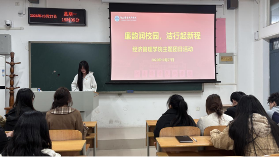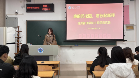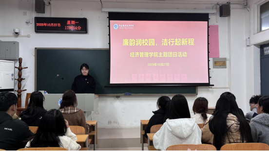 为加强廉洁文化教育,引导青年学生筑牢思想道德防线,10月27日下午,经济管理学院组织部分团员代表,在2203教室开展一场以“廉韵润校园·洁行启新程”为主题的团日活动。
