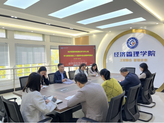 2025年11月3日上午,经济管理学院理论学习中心组在笃行楼610会议室召开专题学习会,深入学习贯彻党的二十届四中全会精神。学院领导班子成员、科级以上干部参加学习。