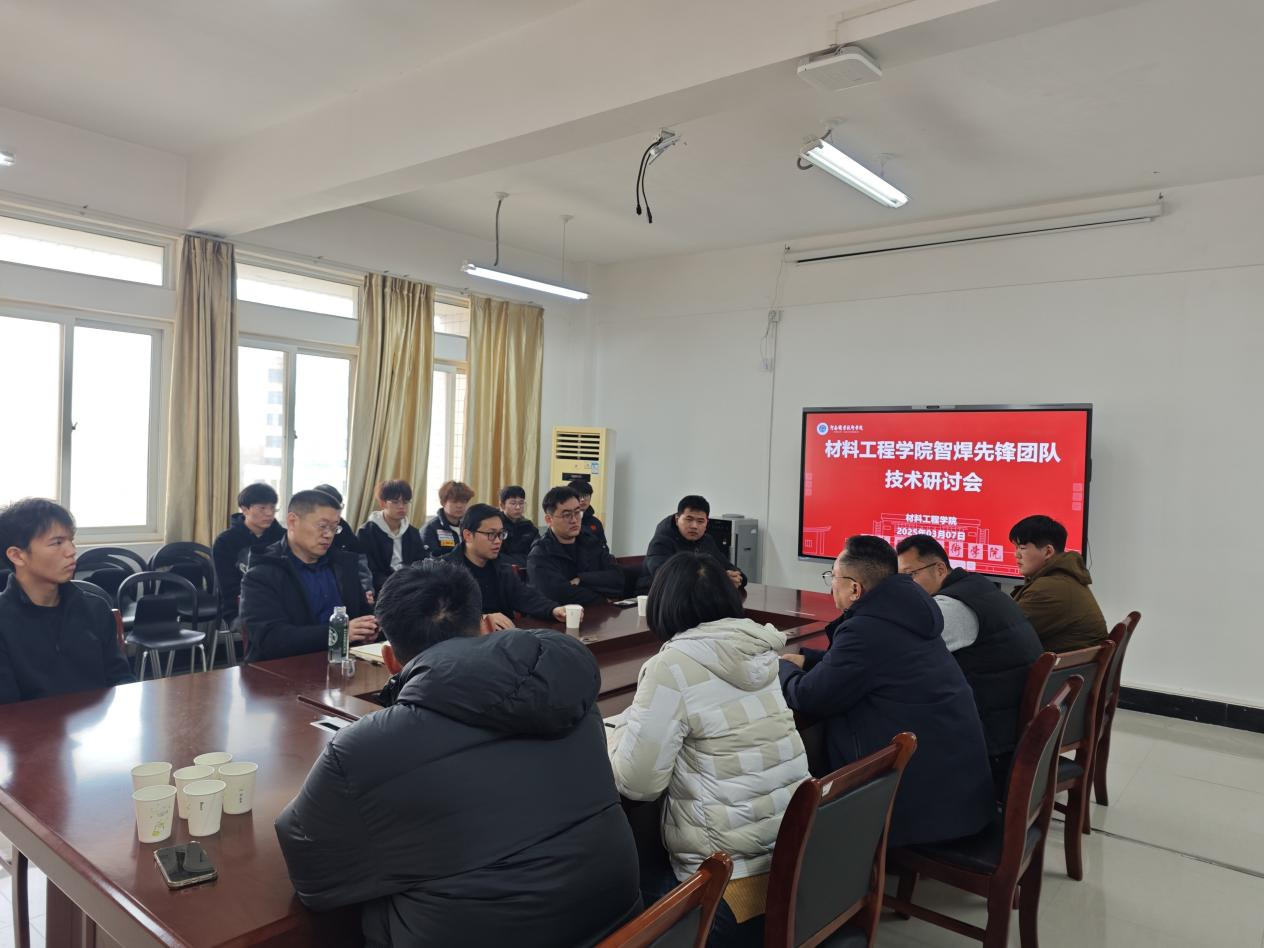 2025年3月7日,哈尔滨工业大学郑州研究院夏鸿博博士与李昊岳博士到访材料工程学院,参加智焊先锋团队研讨会。会上,双方达成共识,共同组建“校企双师+优秀学生”智焊先锋团队,依托哈尔滨工业大学郑州研究院科研项目开展深度合作,探索科教融汇实施路径。