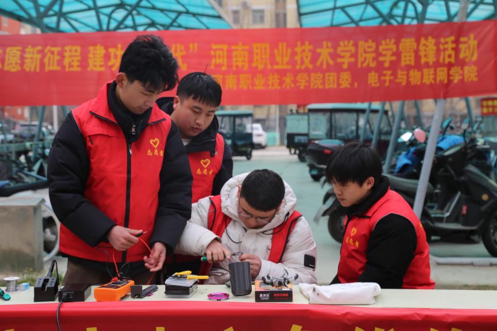 为深入学习宣传贯彻党的二十大精神,贯彻落实习近平总书记对深入开展学雷锋活动作出的重要指示精神,丰富新时代青年志愿服务内涵,引领广大团员青年践行志愿者精神,投身社会服务,落实“大学生社区实践计划”,3月5日,校团委联合电子与物联网学院走进贾鲁街社区开展“志愿新征程 建功新时代”大学生进社区志愿服务活动,进行义务维修家电。