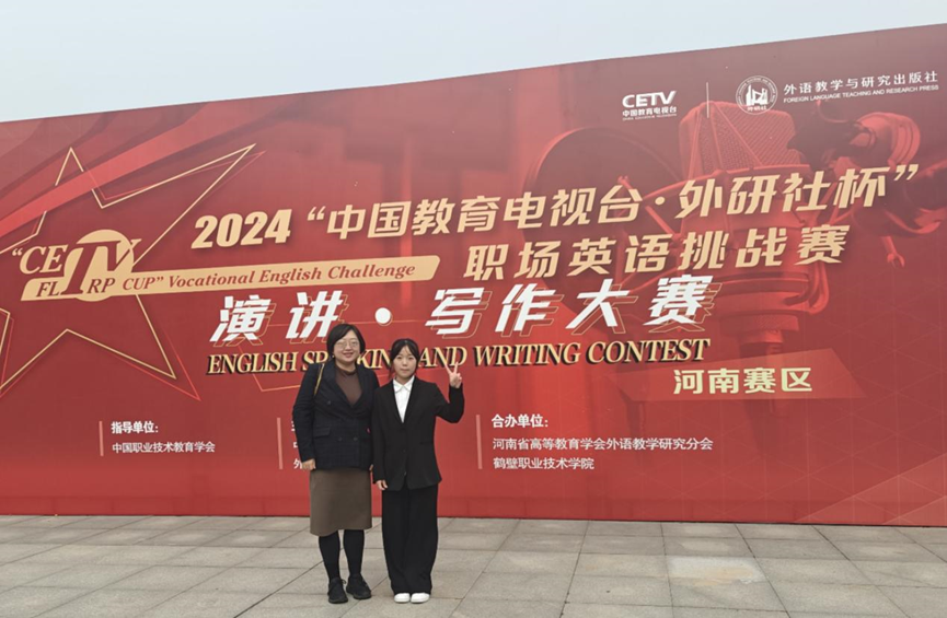 10月26至27日,由中国教育电视台和外语教学与研究出版社联合主办的2024“中国教育电视台·外研社杯”职场英语挑战赛河南省省赛在鹤壁职业技术学院举行,来自全省39所院校的180余名学生参赛。我院商务英语专业学生郭佳琪、李梦慧代表学校参赛,凭借优良的职业素质和扎实的专业技能,最终郭佳琪荣获演讲赛项一等奖、李梦慧荣获写作赛项二等奖。