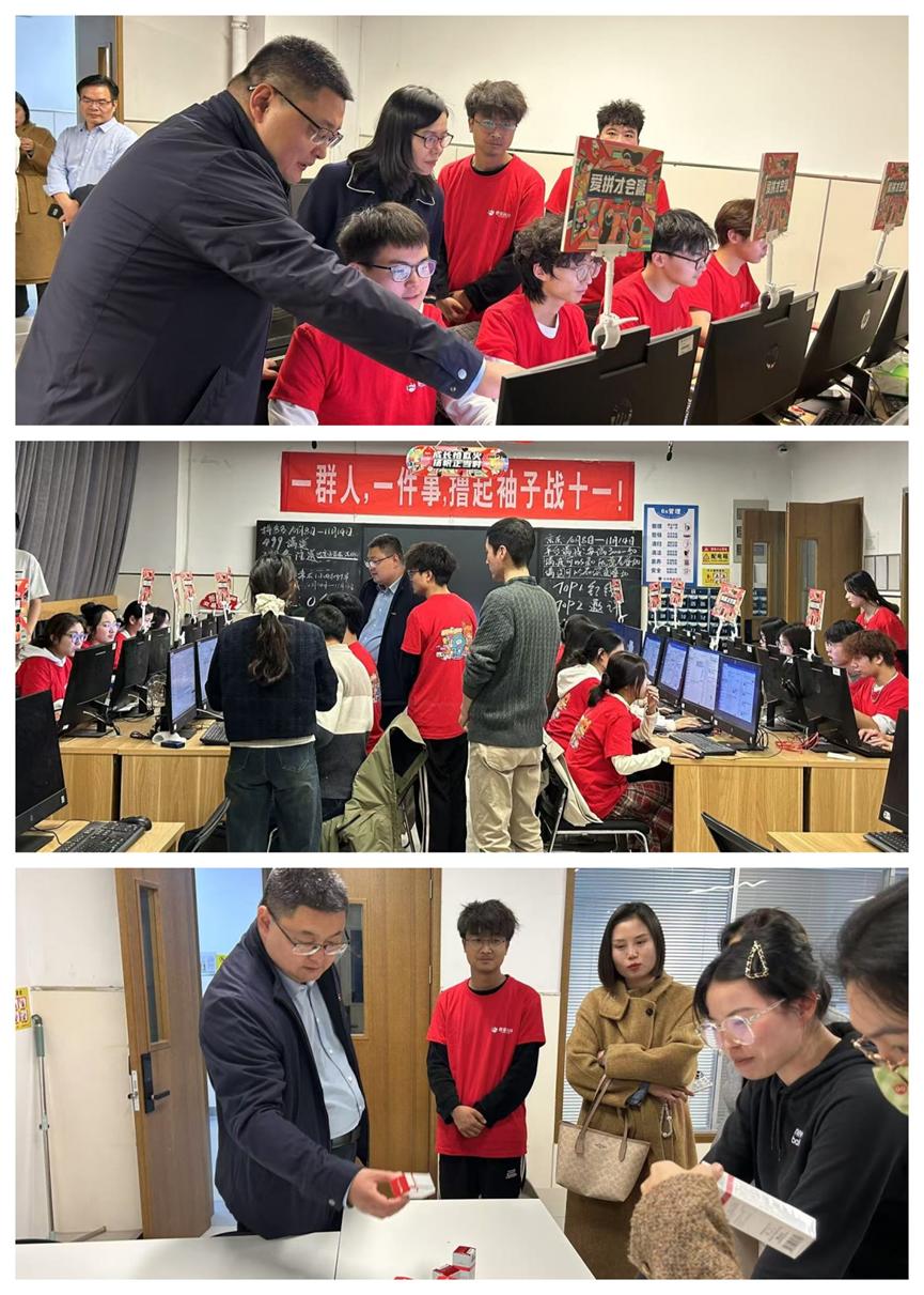 10月21日晚,电商物流学院领导班子一行到合鼎楼观摩了2023级学生生产性实训开展情况,就双元教学安排、学生岗位适应情况和安全情况进行调研指导。