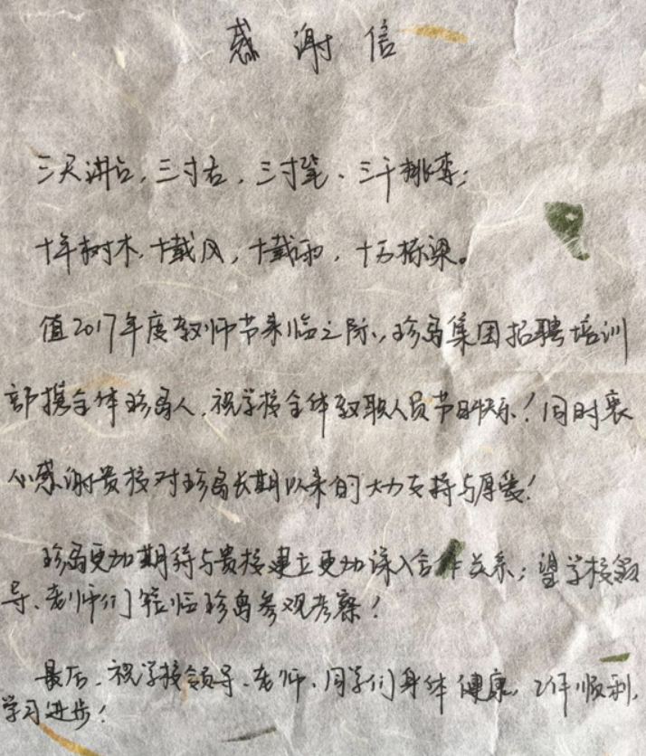 金风送爽,丹桂飘香。在第34个教师节到来之际,我院校企合作单位珍岛集团向我院发来教师节慰问信,向全体教职工致以诚挚的节日问候和祝福;对我院多年为企业不断输送优秀人才表示衷心感谢,并赠送锦旗。