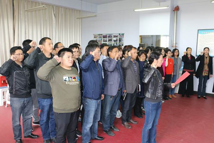 “忠诚人民教育事业,履行教师职责,珍惜教师声誉,爱国守法,敬业爱生,教书育人,严谨治学,服务社会,为人师表,做社会主义道德的示范者、诚信风尚的引领者、公正正义的维护者,为创建优质高职,培养高素质技能型人才,而不懈奋斗!”活动现场,全院老师面向国旗肃立,举起右手,庄严宣誓,表达了为高素质技能型人才而不懈奋斗的信心和决心。
