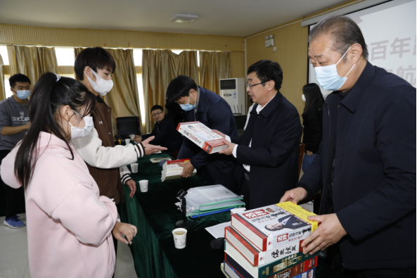在开展主题活动之前,梅校长进入市场营销专业课堂进行了听课,了解了市场营销专业的课程体系、教学组织和班风、学风情况。在20日的进班活动中,梅校长首先参加了《传承红色基因 凝聚奋进力量》主题班会,观看了学生诗朗诵,并为大家讲述了学校发展规划和以群建院的原则和目的,激励学生要树立专业自信,掌握职业技能,成为技术能手。在随后开展的座谈会上,梅校长就学生提出的宿舍空调安装和一站式综合服务中心建设等问题进行了一一解答,引导大家要厚植爱国主义情怀,把对祖国和学校的爱,自觉投入到中国特色社会主义事业和学校改革发展的滚滚大潮中,彰显时代担当,不惧风雨、勇挑重担,勇做走在时代前面的奋进者、开拓者、奉献者。最后,梅校长又为大家上了精彩的《奋斗百年路 启航新征程》主题思政课,教育大家要加强学习,把学习放在学校生活的第一位,为实现中华民族伟大复兴的中国梦而努力读书;要注重方法,要在“岗课赛证”融通上下功夫,把握学习方向,增强职业技能,明确人生航向;要增加实践,做到课堂上下相结合,学校内外相结合,瞄准市场需求,把握产业定位和发展方向,通过实践获得知识、掌握技能、取得成功;要加强思想政治建设,加强对十九届六中全会精神的学习,学好、悟好、传承好伟大建党精神,进一步加坚定四个自信,接力奋斗、埋头苦干、勇毅前行。为鼓励同学们多读书、读好书,切实提升职业能力,梅校长还向同学们赠送了《总裁微营销兵法》等书籍、音像制品和学习用品。