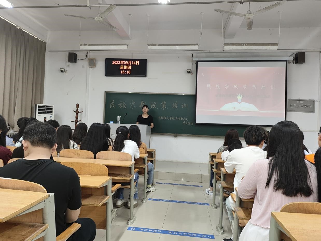 为深入学习贯彻党的二十大精神,持续推动贯彻落实中央民族工作会议精神和全国宗教工作会议精神走深走实,加强民族宗教政策法规学习宣传。电商物流学院学生党支部于9月14日在1101教室开展“民族宗教政策法规”学习培训会。预备党员、入党积极分子和学生干部共63人参加了培训。培训由党支部书记张佳主持。