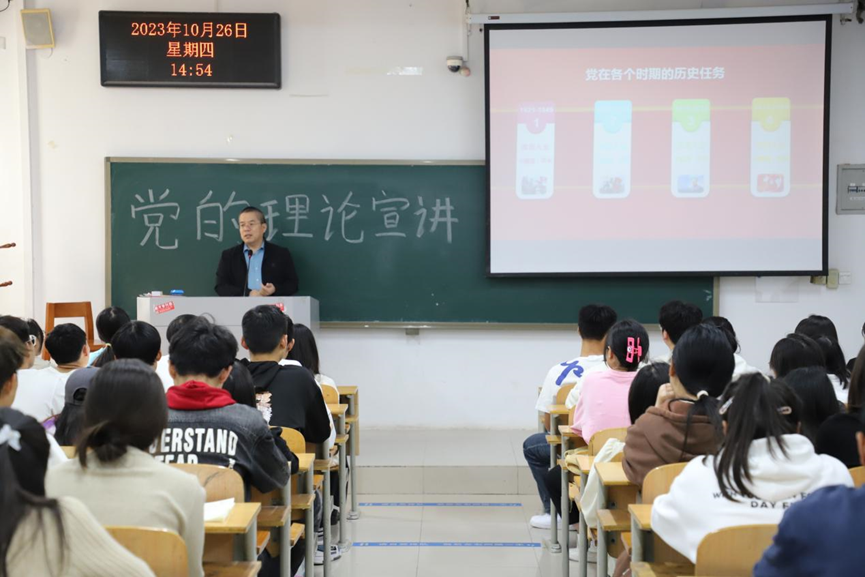 为进一步深入学习宣传贯彻党的二十大精神,扎实推进习近平新时代中国特色社会主义思想入脑入心。1026日下午,我院学生党支部邀请吴波老师在明理楼1106教室开展党的二十大精神宣讲。108名学生代表听取了讲座。