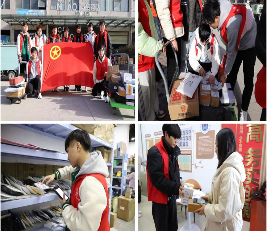 3月7日下午,20余名青年志愿者开展了“让爱‘箱’遇”爱心速递志愿服务活动。有人帮驿站工作人员摆放快递、粘贴面单;有人依据取件码、收件人快速帮助大家找到对应的快递;有人及时挑选、核对服务群里的快递信息并第一时间将快递送到指定地点。大家分工负责、干劲十足、配合默契,不仅奉献了爱心还提高了学校的快递流通速度。