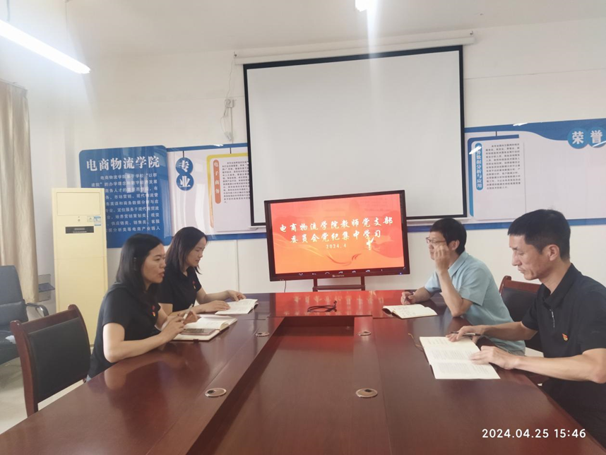 4月25日下午,电商物流学院教师党支部委员会召开党纪学习会,会议由教师支部书记赵丽英主持,全体委员参加。