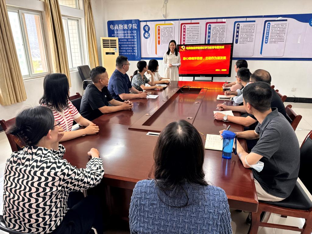 为深入学习贯彻校党委厉励书记4月29日专题党课要求,5月16日下午,电商物流学院教师党支部在笃行楼523开展了一次针对性强、重点明晰的纪律党课专题活动,教师支部书记赵丽英以“凝心铸魂学思想,主动作为谋发展”为主题,为教师党支部全体党员教师讲授专题党课。