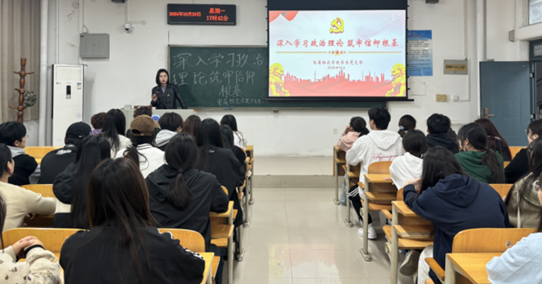 张佳首先带领大家学习了回信的全文内容,就回信的核心内容深刻内涵和重要意义进行深入解读。随后,她从教师和学生两个角度,阐述了如何落实“立德树人”根本任务,如何回答好“培养什么人、怎样培养人、为谁培养人”这一教育的根本问题。她强调,在新时代、新征程下,广大师生要紧跟时代步伐,以新颖的视角和方式讲好中国故事,走好人生道路,勉励大家要不断学习专业知识,提升专业素养,牢记习近平总书记的嘱托,树立“四个意识”、坚定“四个自信”、坚决做到“两个维护”,坚守初心使命,勇于改革创新,以实际行动为实现中华民族伟大复兴的中国梦贡献青春奋斗力量。