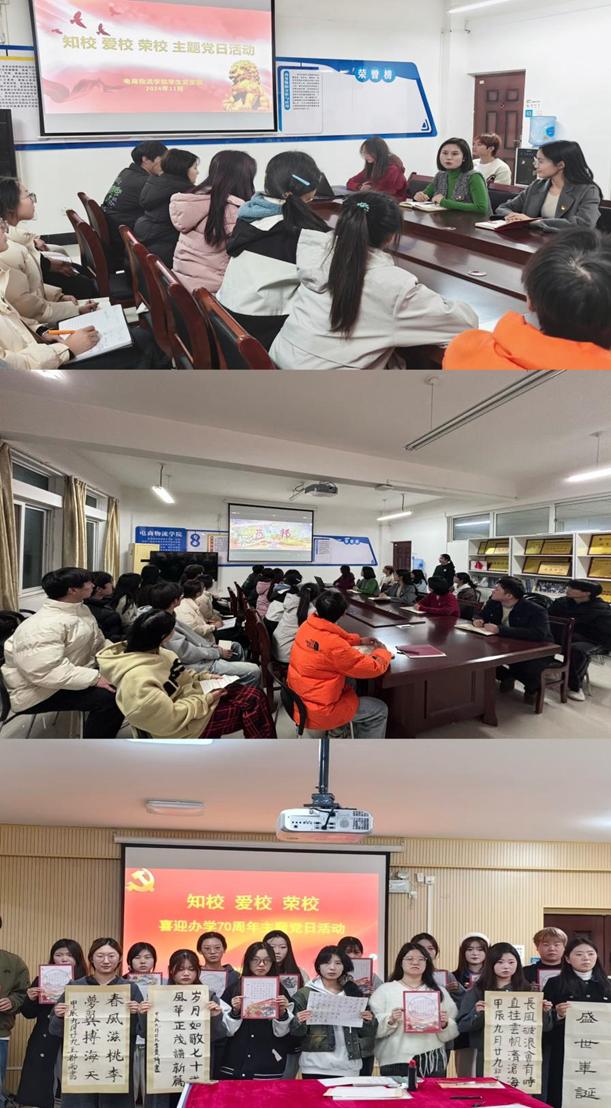 为庆祝学校办学70周年,电商物流学院学生党支部于11月20日在笃行楼527举办了“知校爱校荣校”主题党日活动。支部全体党员和入党积极分子一起共同追溯学校办学历史和办学成就,抒发爱校情怀。活动由党支部书记张佳主持。