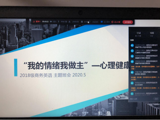5月5日晚,商英18级全体学生在辅导员胡兆麟的带领下举行了《“我的情绪我做主”——心理健康》主题班会。