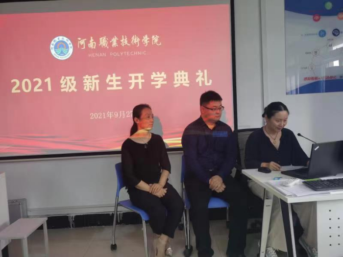 9月27日电商物流学院在实训室举办2021级新生线上开学典礼,师生共聚云端。校长梅乐堂致辞,教师代表和学生代表分别发言。开学典礼由各专业新生辅导员主持。