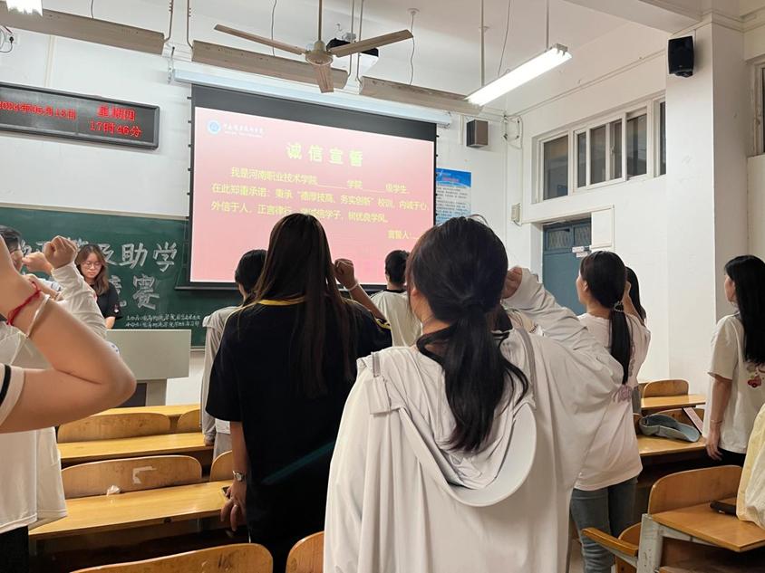 以国家助学贷款为代表的资助政策是解决家庭经济困难大学生上学难问题的有效资助手段之一,是落实社会制度保障、有助于实现教育公平与社会公平的重要抓手和民生工程。此次活动采取线下为主、线上为辅的形式,经过各班初赛选拔,最终有20名学生晋级决赛。活动分赛前宣誓、知识讲解和试题竞赛等三个环节。活动伊始,学生干部带领全体参赛者进行诚信宣誓,宣誓声慷慨激昂,瞬间点燃了现场的气氛。随后,学生干部利用PPT,就资助政策及助学贷款进行了简要讲解,参赛者们都聚精会神地聆听。讲解结束后,监考人员宣布竞赛正式开始,竞赛从试题库中精选了20道题,包括5道选择题、5道判断题、5道填空题和5道简答题,教室里键盘声此起彼伏。经过激烈角逐,市营232班刘来恩、数据分析231班张雪蒙、物流233班何航、物流221班屈玉青、市营221班郭兰兰等5名同学分获一二三等奖。