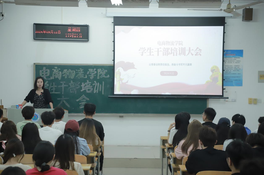 为进一步提升学生干部队伍的综合素质和工作能力,9月12日下午,电商物流学院在2106教室召开学生干部培训大会。团总支书记张佳老师出席会议并讲话。102名学生干部参加了培训。会议由学生会主席苏浩杰主持。