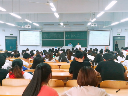 接着,胡老师以幽默风趣的形式向同学传授就业观,极大的调动了同学们的积极性。希望毕业生们能从基层做起,不要一开始就把目标放在国企,而是应该从中小企业开始,多多积累工作经验,这样既能为自己创造好的学习条件,也可以更好的锻炼自己。