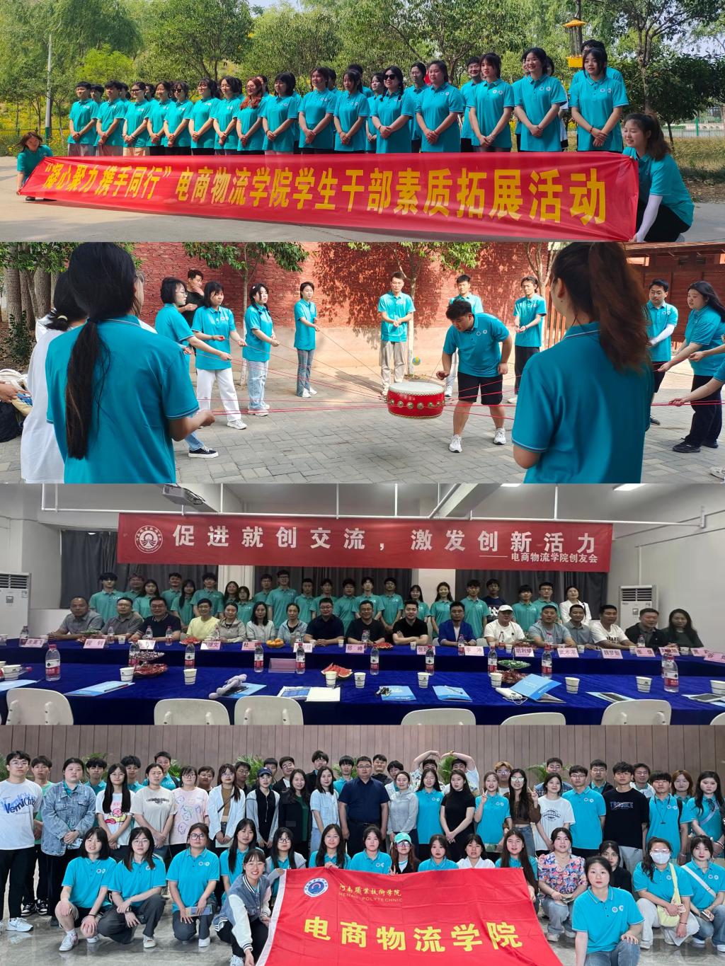 20日下午,65名师生代表前往中牟县素质拓展基地,开展“青春正当时 凝力勇担当”学生干部素质能力拓展培训活动,活动设“破冰”、“不倒森林”、“极速六十秒”、“击鼓颠球”等内容,大家在教练的指导下,在竞争中合作,在合作中竞争,高质高效完成了各项培训任务,培养了大家团结一致积极向上的团队进取心,提升了团队执行力与创造力。当晚,电商物流学院创新创业代表团成员与10名优秀创友开展了“校友面对面”活动,参加第九届互联网+大学生创新创业比赛的项目负责学生首先路演了自己的参赛项目;随后优秀创友结合自己的创业经历对项目进行了指导,并现场将自己的社会资源赋能到项目中;最后,教师代表、优秀创友和学生代表还就学生在校和毕业后的创业项目选择、创业注意事项和创业政策扶持等方面进行了深入交流。21日上午,师生代表前往郑州市博物馆开展研学活动,大家通过听取现场讲解、观看珍贵文物,近距离的聆听“历史”,触摸“历史”,感受“历史”,享受了一顿丰盛的历史文化大餐,重温了从黄河流域农耕文明到现代文明发展的历程,深刻了解了黄河文明发展的基本脉络,进一步增强了文化自信。