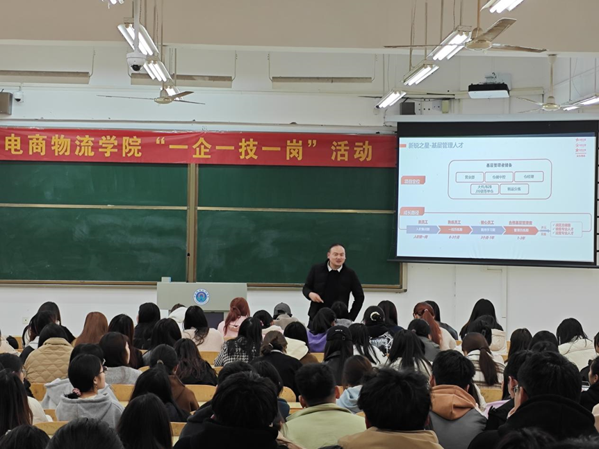 在活动现场,亚洲一号杭州智慧物流园和合肥智慧物流园负责人从国家物流产业发展趋势、京东物流岗位设置、岗位能力要求、职业发展规划、企业文化等方面进行了详细全面的讲解,耐心解答了同学们提出的各类问题。“一企一技一岗”培训活动结束后,两家企业根据学生专业情况和个人实习就业意向,现场拿出412个实习和就业岗位供同学们挑选,现场气氛热烈,受到同学们欢迎。