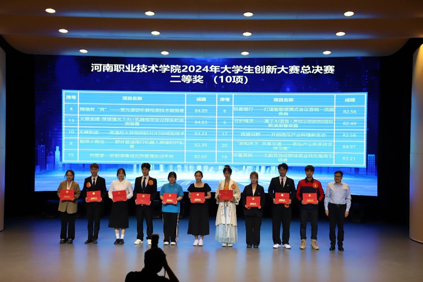 5月16日下午,河南职院2024年大学生创新大赛决赛在音乐厅举行,20个项目参加了路演。我院3个项目获奖。