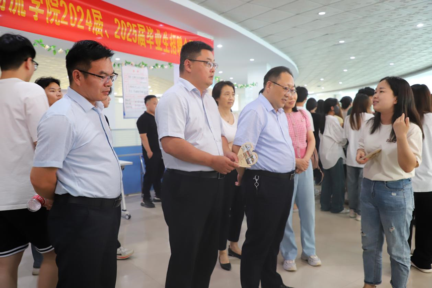 副校长鲁冬深入双选会现场调研指导,了解企业岗位能力需求,毕业生职业发展情况,听取了企业对学校发展、人才培养和招聘会开展形式等方面的意见和建议;他在了解毕业生求职意愿后鼓励现场毕业生要树立正确的就业意识,勇敢的迈出第一步,明确自己的优势积极推介自己,把握住求职黄金期和优质就业岗位。电商物流学院领导班子成员、教研室主任、毕业班辅导员和部分专职教师也都忙碌在双选会现场,为学生答疑解惑进行就业指导,根据企业需求精准推送学生,调研企业职业能力需求调整教学内容,关心往届毕业生职业发展情况。600余名毕业生积极穿梭于各企业展位间,与企业代表深入交流,详细了解企业概况、岗位需求及薪资待遇等信息。企业工作人员则通过细致交谈、认真审阅简历等方式,全面评估毕业生的综合素质与就业意愿,双方互动频繁,氛围融洽。