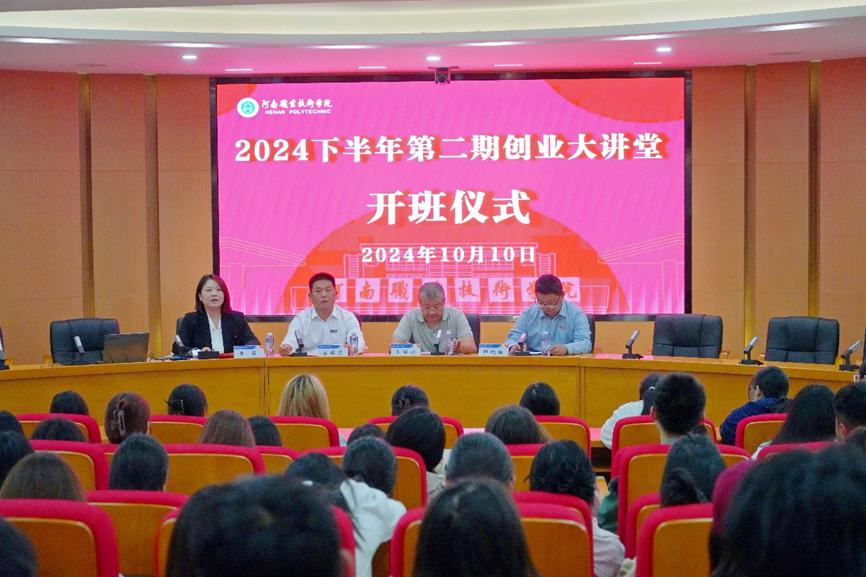 10月10日下午,河南职业技术学院2024下半年第二期创业培训在239会议室正式开班授课。电商物流学院170名学生代表参加了开班仪式。继续教育学院院长梁保然、副院长黄菲及电商物流学院党总支书记解鹏程出席开幕式并讲话。优秀校友卜祥洲为学生上开班第一课。