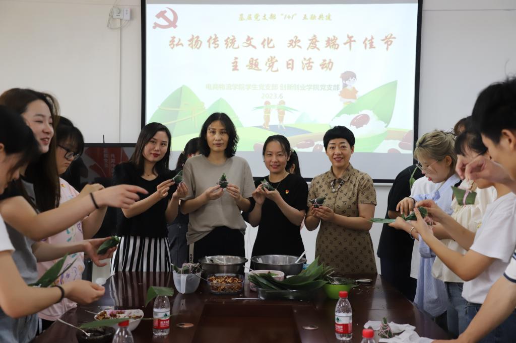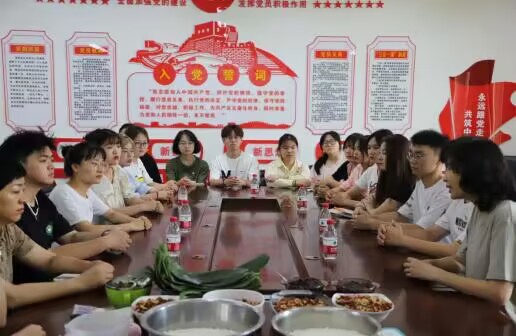 艾叶裹粽香,七一已临近。为迎接和庆祝党的生日,传承中国优秀传统文化,营造浓厚节日氛围。6月20日,电商物流学院学生党支部携手创新创业学院党支部在523党建活动室共同举办了“粽叶飘香,端午安康”DIY包粽主题党日活动。创新创业中心党支部书记王延东、电商物流学院学生党支部全体党员和入党积极分子共43人参加活动。活动由党支部书记张佳主持。