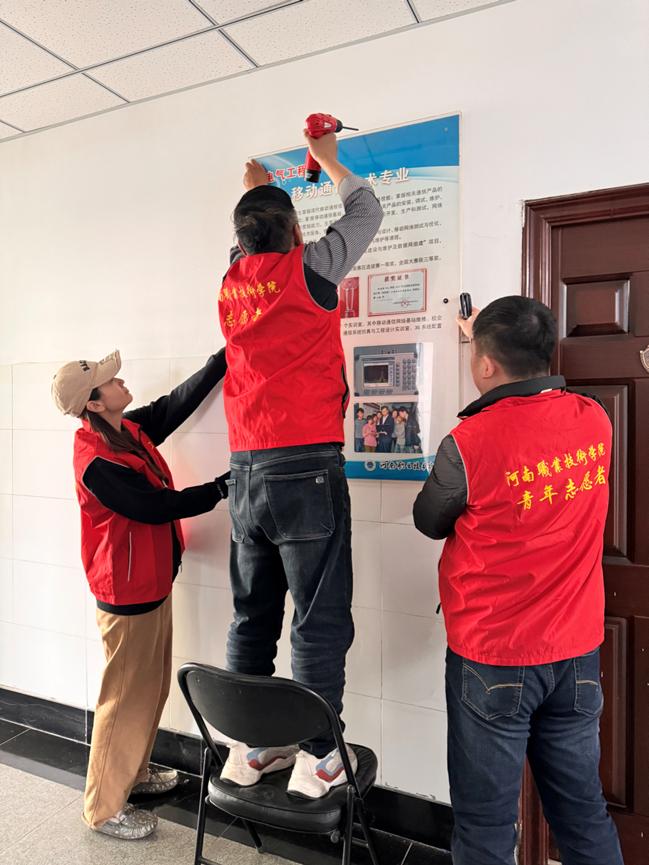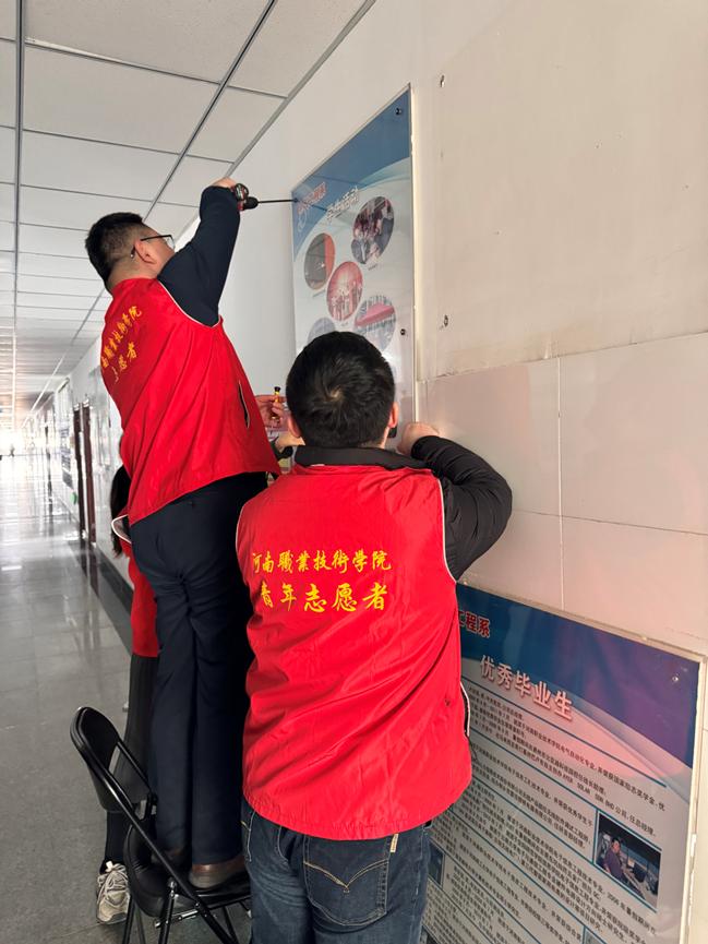 在活动中,志愿者们分工负责发挥各自专长,对老旧宣传板进行了拆卸,对保留宣传板和宣传栏进行了整理和擦拭,对楼道和办公室卫生死角进行了精心清理。此次活动不仅提升了学院的环境卫生水平,更在潜移默化中培养了师生的环保意识和公益精神。