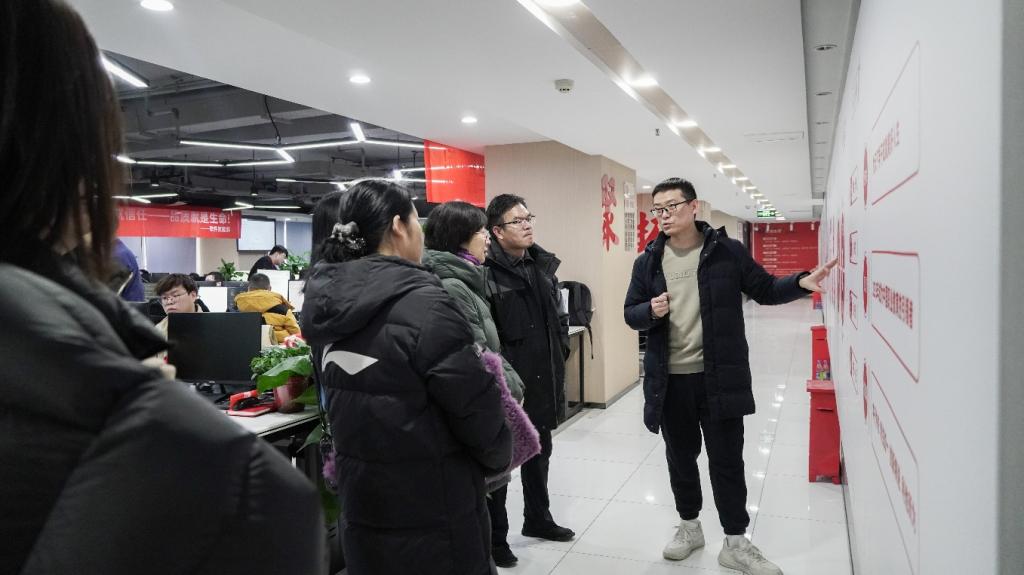 研学活动开始,马院长带领教师们参观了公司的工作场景,与企业负责人进行了深入交流,同时也对我校入职库课的毕业学生表示关心并给与鼓励。公司负责人可云向老师们详细介绍了公司的业务、运作情况、技术应用、以及企业文化等。这种现场学习的机会让老师们对于我院专业建设、人才培养、课程设置、实训基地建设有了更直观的认知,增强了教学内容的时效性和实用性。