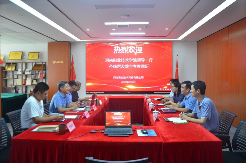 在豫信电子科技集团,调研组一行就商务数据分析与应用专业人才培养模式、校企深度融合方法、产业学院建设和运行机制、横向技术服务开展策略等方面进行了广泛而深入的交流。