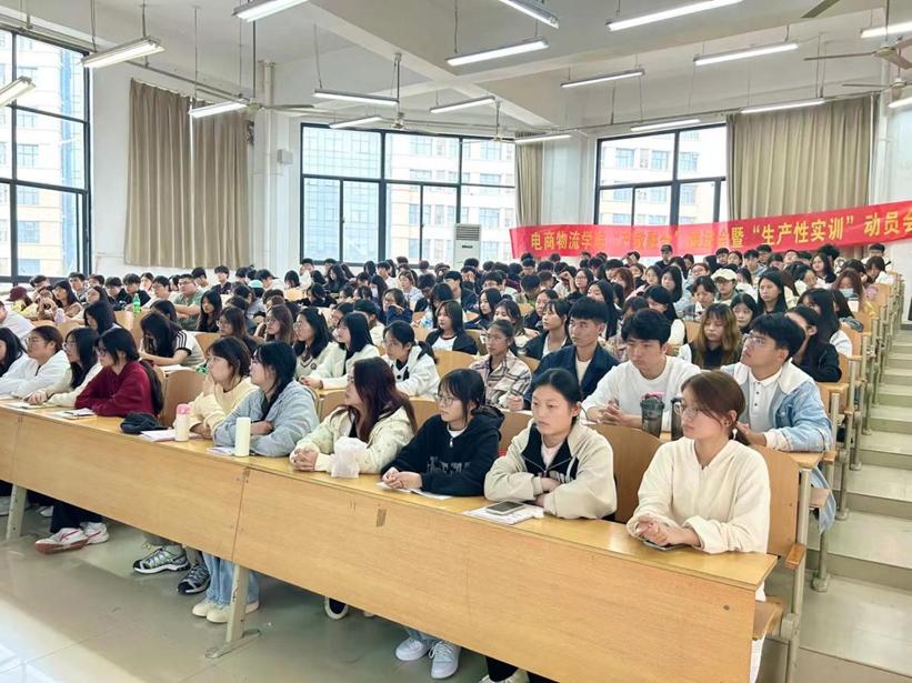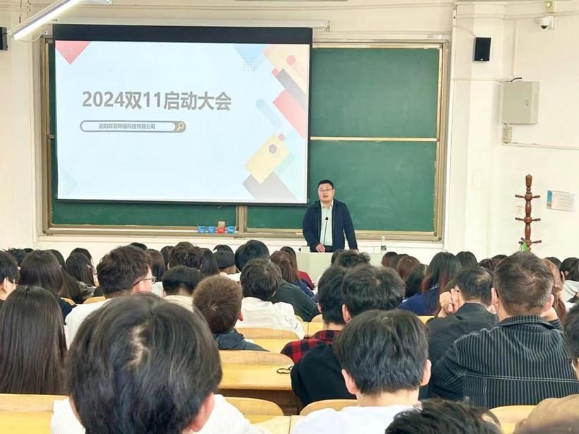 10月8日,电商物流学院2024年“双十一”生产性实训项目启动大会在电教楼202举行。电商物流学院党总支书记解鹏程、副院长马会杰、河南群客网络科技有限公司董事长陶苗苗及企业和相关专业负责人、学生代表等200余人参加了会议。会议由电子商务教研室主任乔陆主持。