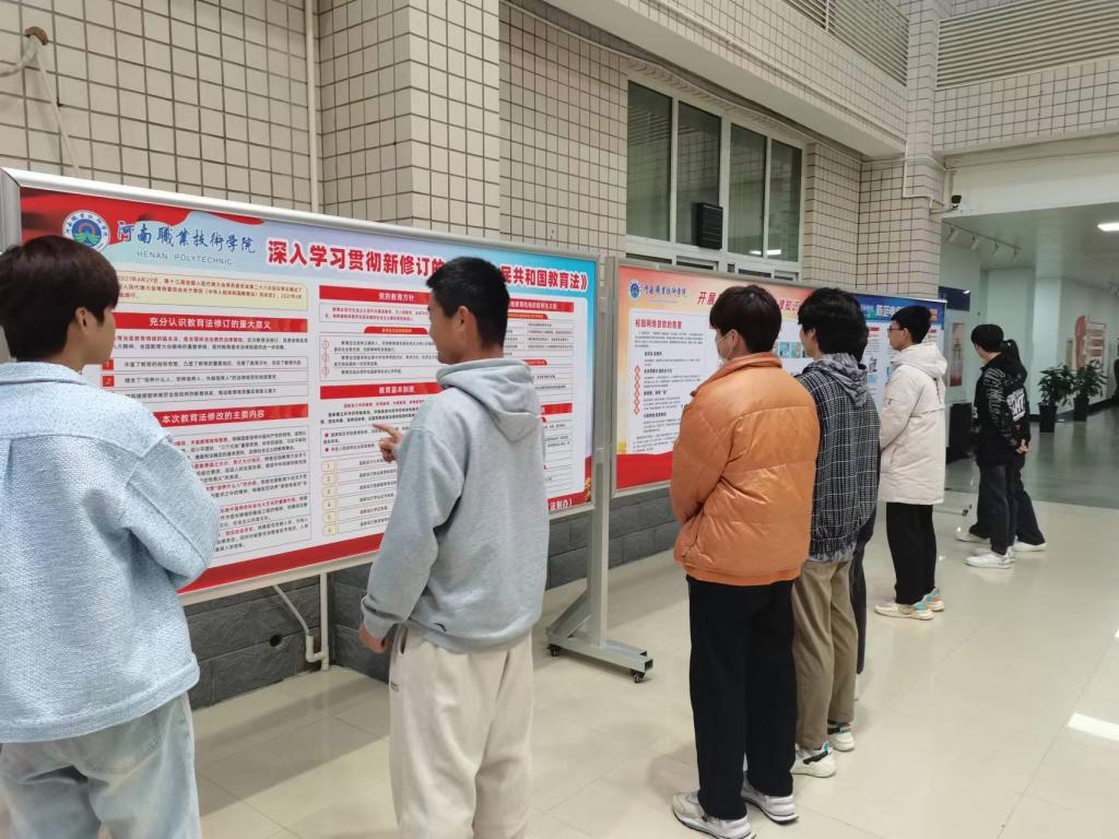 校党委副书记、纪委书记田华带领师生代表受邀参加了由省教育厅、省司法厅主办的“河南省教育系统第二届法治教育宣传周活动启动仪式”。学校第二届法治教育宣传周活动,由党政办、宣传部、院团委牵头,其他相关部门及各二级学院配合实施。在宣传活动中,充分利用学校校报、宣传展板、校园网络、电子屏幕等各类媒体,对《中华人民共和国宪法》《中华人民共和国教育法》《中华人民共和国职业教育法》《中华人民共和国保密法》等法律法规进行宣传。同时围绕“防范网络诈骗”“增强保密意识,筑牢安全防线”“预防青少年犯罪”等主题,运用师生喜闻乐见的形式,开展了法治宣传教育讲座、法律知识竞答、观看法治影片等一系列丰富多样的法治宣传活动。活动期间,全校师生广泛积极参与,掀起了我校师生学法、守法、用法的法治宣传热潮。