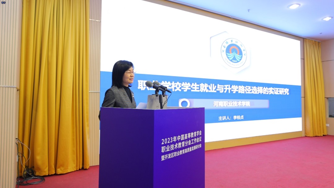 在会议深化现代职业教育体系建设改革专题研讨阶段,国内9家院校代表围绕各地、各校深化现代职业教育体系建设改革的经验进行深入交流。学校党委书记李桂贞作为院校代表应邀出席,并作了以“职业学校学生就业与升学路径选择的实证研究”为题的精彩报告。发言深刻剖析了当前职业院校学生在就业与升学路径选择、职业规划等方面存在的问题及成因,并提出了“打造全过程的职业生涯规划指导体系”“搭建人才供需双向精准对接桥梁”“实施人才个性化定制化精准培养”“畅通拓宽技术技能人才成长渠道”“营造‘轻学历、重技能’社会氛围”等切实可行的对策建议。