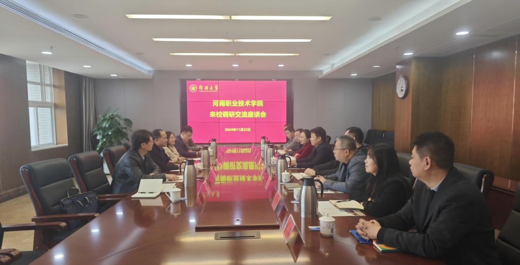 11月22日下午,学校党政办公室副主任曾凤括一行6人赴郑州大学开展学习交流活动。郑州大学党政办公室副主任王元锋、法制办公室主任赵大鹏、机要室主任张兴华、信访办公室主任王小兵及相关科室负责同志参加交流。