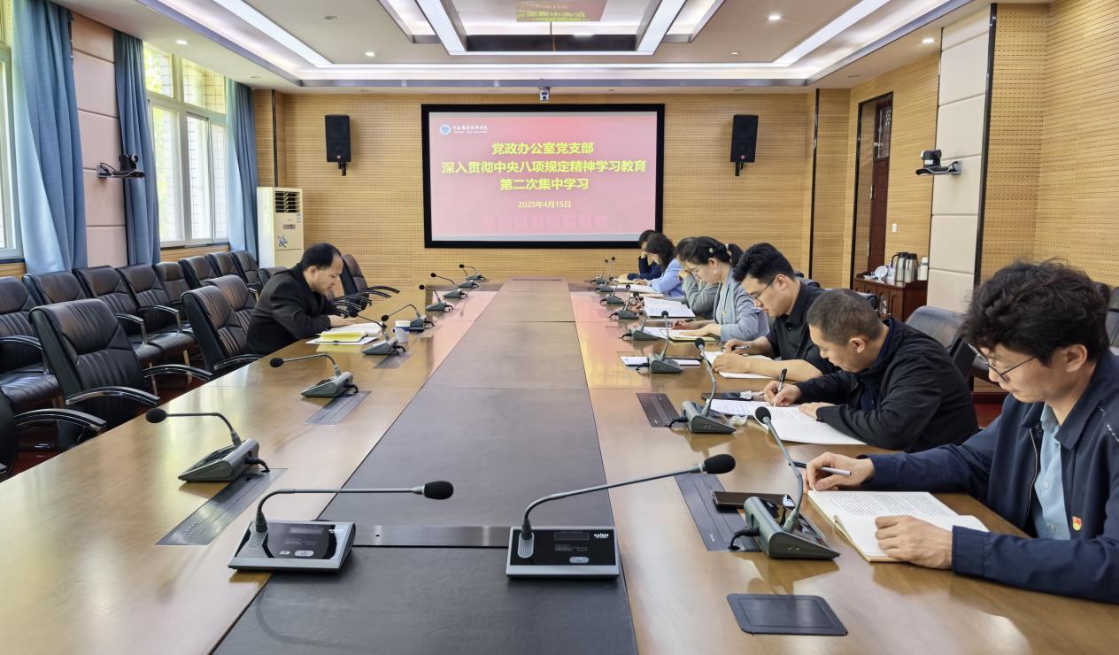 4月15日上午,党政办公室党支部开展深入贯彻中央八项规定精神学习教育第二次集体学习会暨警示教育会。会议由宣传委员主持,全体党员参加学习。