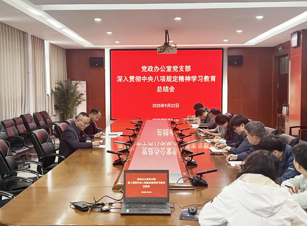 9月22日上午,党政办公室党支部召开落实中央八项规定精神学习教育总结会,全面总结党政办公室党支部深入贯彻中央八项规定精神学习教育开展情况,锲而不舍落实中央八项规定精神,推进作风建设常态化长效化。党支部全体党员出席会议。会议由党政办公室党支部书记主持。