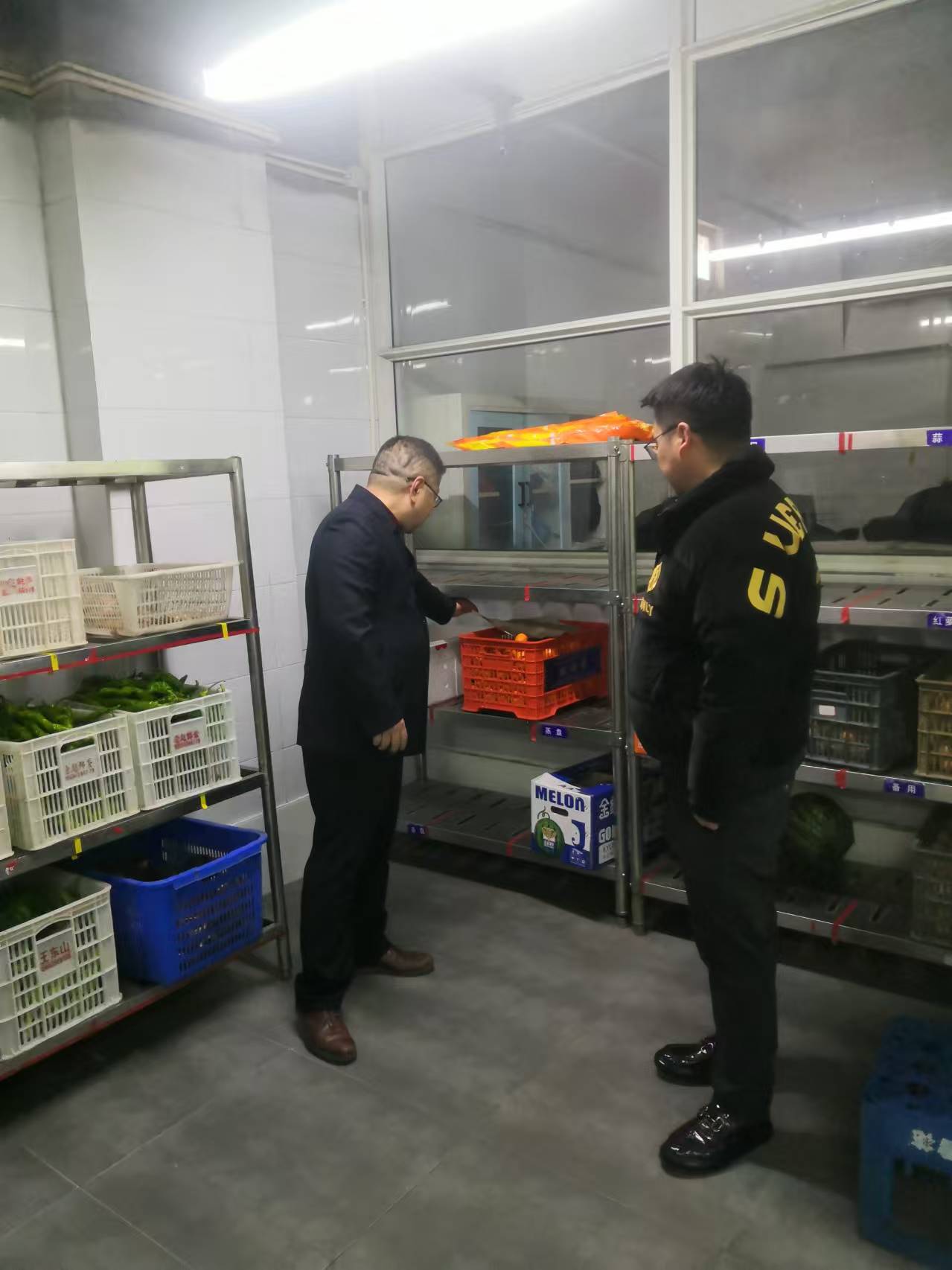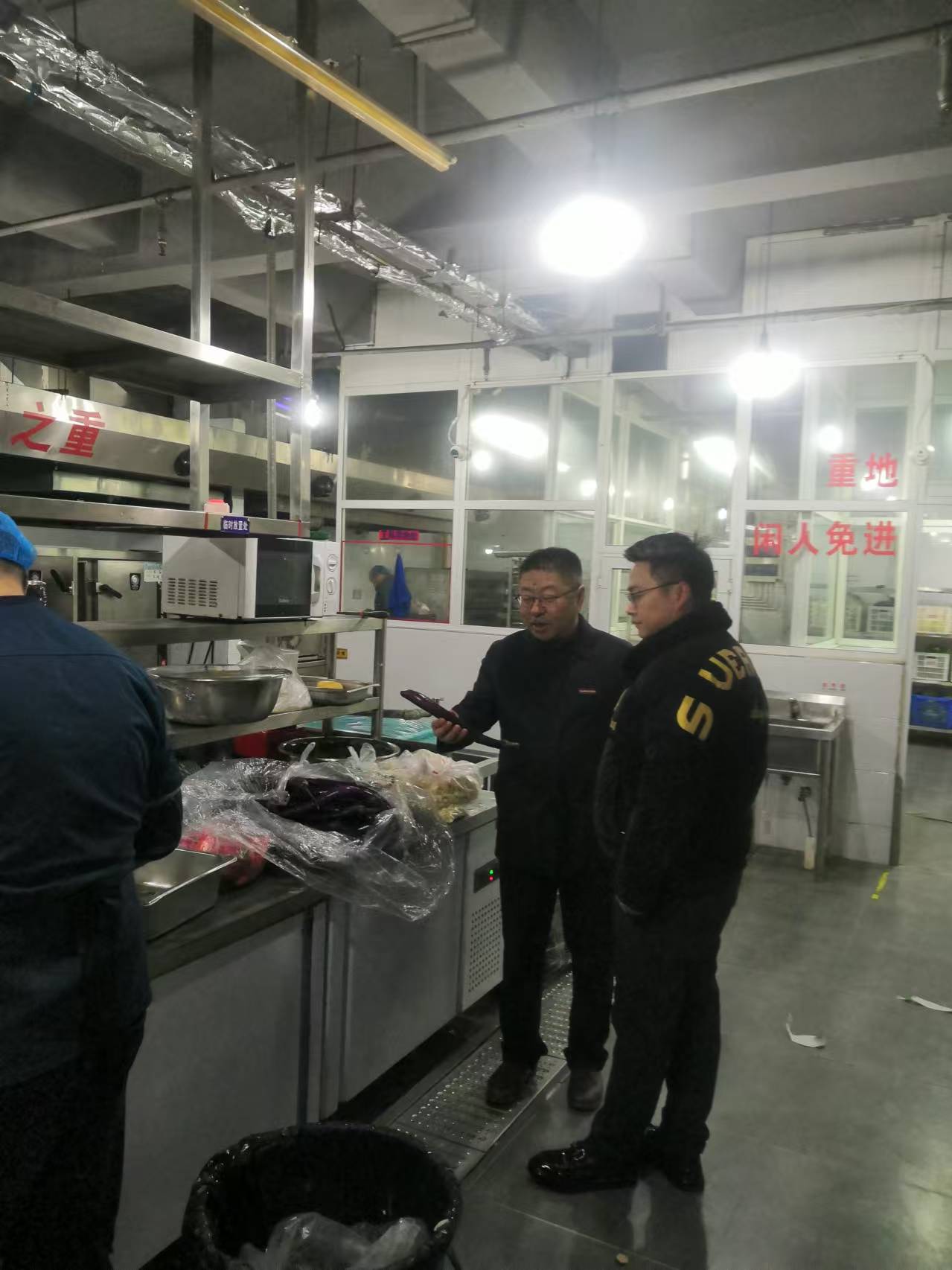 12月19日上午,后勤管理处处领导带领校园食品安全员,突击检查园中园职工餐厅及为天食府餐厅的食材进货、储存及食品安全情况。