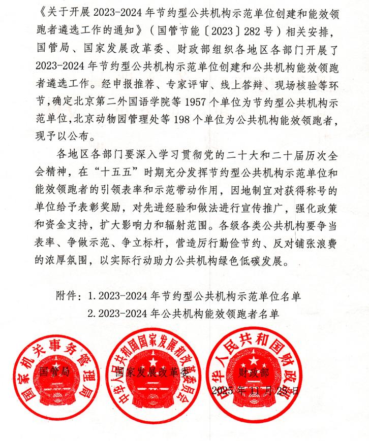 近日,国家机关事务管理局、国家发展改革委、财政部联合发布全国节约型公共机构示范单位名单,河南职院凭借在绿色校园建设及能源资源节约工作中的突出成效,历经自评申报、省级审核、国家验收三大环节,通过专家评审、线上答辩和现场核验等多轮严格筛选。成功获评国家级“节约型公共机构示范单位”。这是学校继2021年荣获全国“公共机构水效领跑者”荣誉称号后,再度斩获国家级节能荣誉。